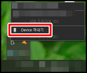USB를 사용하실 때 많은 분들이 간과하고 있는 부분이 있어서 말씀드리고자 합니다. USB에 파일을 전송하시고 나서 시작프로그램 트레이 영역에서 [Device 꺼내기]를 누르지 않고 빼시는 분들이 계시는 데 반드시 컴퓨터와 USB를 완전히 분리하신 다음에 포트에서 빼시는 게 좋습니다. 그렇지 않으면 전송된 파일이 전부 날아가는 불상사 발생할 수 있습니다.