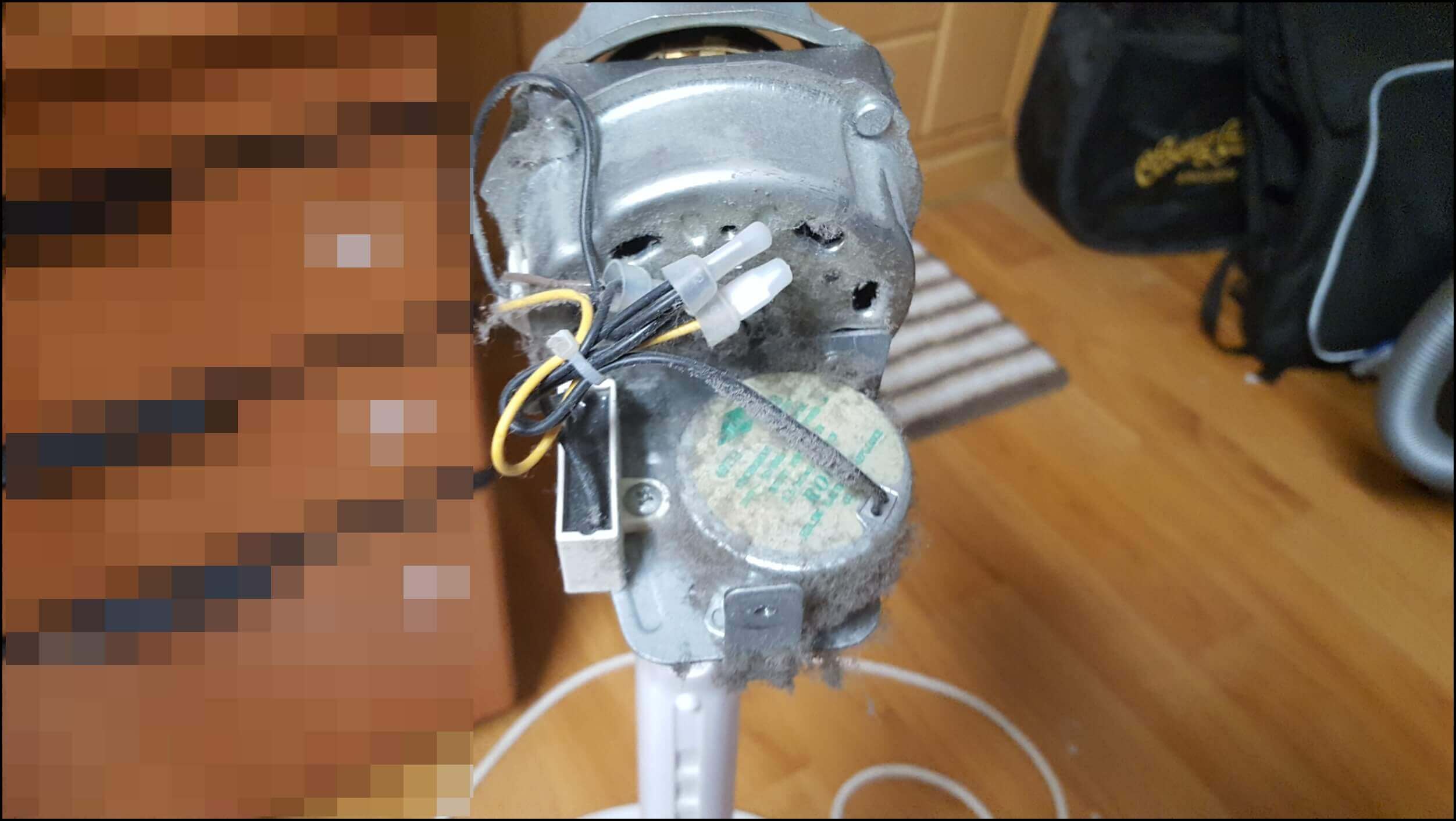 선풍기 뒷부분에 모터 뚜껑을 열어보았습니다. 저렇게 먼지가 쌓이게 되면 합선이 됐을 때 먼지에 불이 붙어서 큰 불로 이어질 수 있습니다. 선풍기를 청소할 때는 항상 날개쪽만 했었기 때문에 모터는 적어도 3년 이상은 청소를 하지 않은 것 같습니다. 그저 아무 이상 없이 사용할 수 있어서 감사하게 생각합니다.
