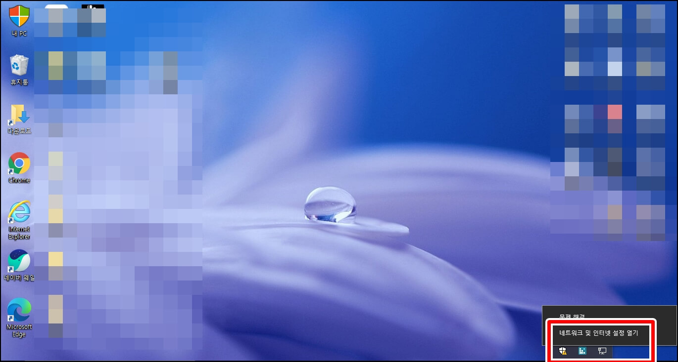 먼저 바탕화면 우측 아래에 아이콘 트레이 영역에서 [숨겨진 아이콘 표시]를 클릭하신 후 [인터넷 액세스]를 클릭합니다.