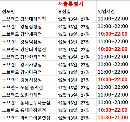 강남 대치역점 강남 삼성점 강남 세곡점 강남 역삼점 강남터미널점 강남 한티역점 강서 가양점 강서 마곡점 경동시장점 노원 중계점 노원 상계점 동대문 두타몰점 동대문 장안점 마리오아웃렛점 서대문 신촌점 서울 서초 G5점 서울 서초점 서초 방배점 송파 문정점 엔터식스 한양대점 영등포 양평점 영등포 여의도점 은평 진관점