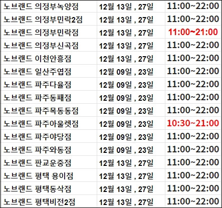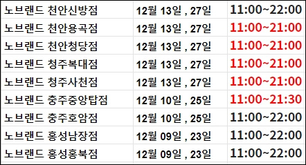 이상으로 전국에 위치한 노브랜드 휴무일과 영업시간에 대해서 알아보았는데요... 최근 코로나가 다시 극성을 부리기 때문에 사람이 많이 모이는 축제 같은 데는 갈 수가 없으니 주말 가볼만한 곳으로는 역시 노브랜드 밖에 없는 것 같습니다. 오늘의 내용을 잘 확인하셔서 휴무일에 가는 일이 없도록 시간 잘 챙기시길 바랍니다