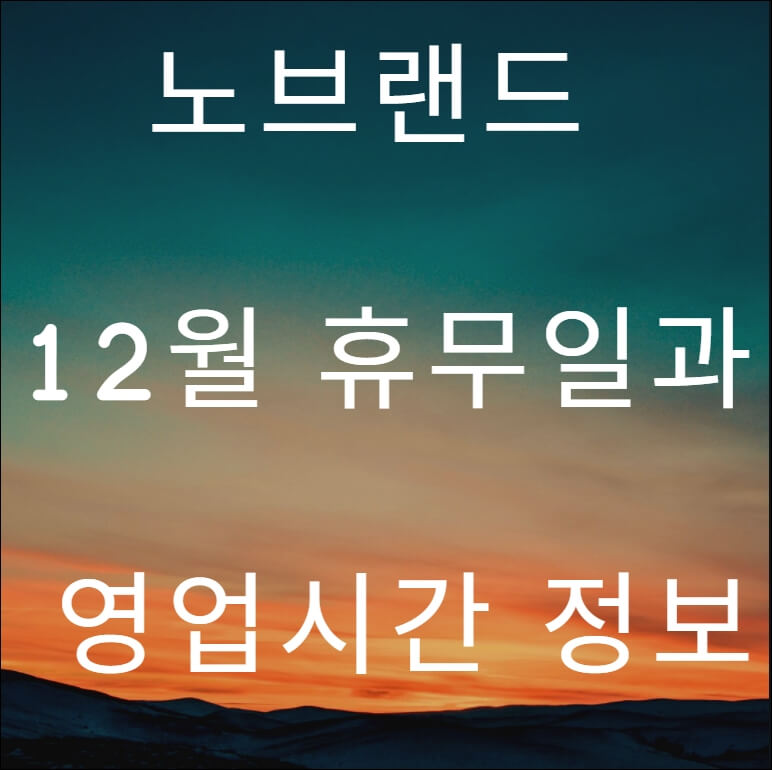 주말 가볼만한 곳 하면 어디가 떠오를까요? 네 그렇습니다! 바로 노브랜드가 떠오르는데요... 노브랜드에는 다른 마트에서 판매하지 않는 차별화된 상품들이 많습니다. 그래서 노브랜드에서 출시되는 각종 먹거리들은 항상 인기가 많죠.. 오늘은 12월 노브랜드 휴무일과 영업시간에 대한 정보를 가지고 포스팅을 진행해 나갈까 합니다. 이제는 제법 날씨도 쌀쌀해지는 게 한낮에도 쌀쌀한 바람이 불고 있습니다. 이럴 때일수록 더욱 자신의 건강을 돌볼 때가 아닌가 싶은데요...