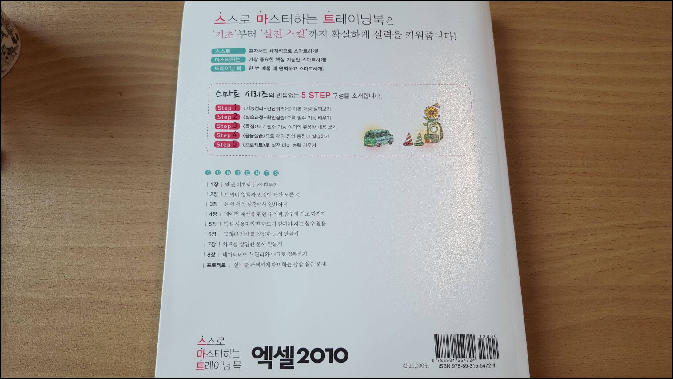 엊그저께 오래간만에 교보문고를 다녀왔습니다. 꼭 책을 사지 않더라도 어떤 신간들이 나오는지 살펴보기 위해 한 번씩 들리곤 하죠. Windows와 엑셀에 관한 책을 찾아보다가 현재 시중에 나온 윈도 책은 심화과정으로 구성된 것이 거의 없기 때문에 구입은 하지 않고 엑셀 2010 책이 여러 개 있길래 구성은 어떻게 되어 있는지 살펴보았습니다. 몇 개를 살펴보다가 유독 1개의 책에 눈길이 갔는데 그 책의 이름이 바로 스마트(스스로 마스터하는 트레이닝 북)라는 책이었습니다.